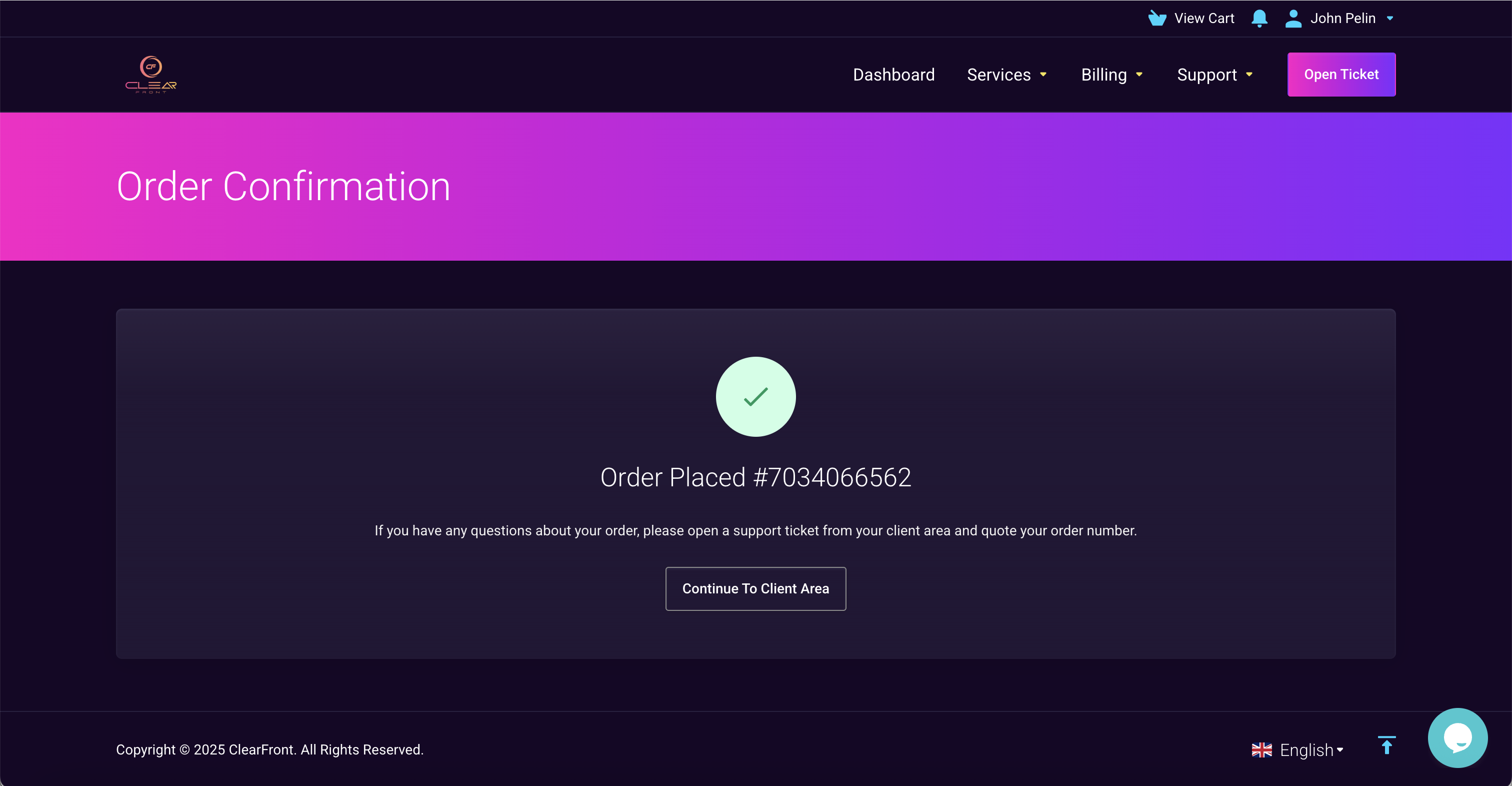 8. You will get an on screen order confirmation message and our system will send your login credentials to your email, along with instructions on how to get our app.